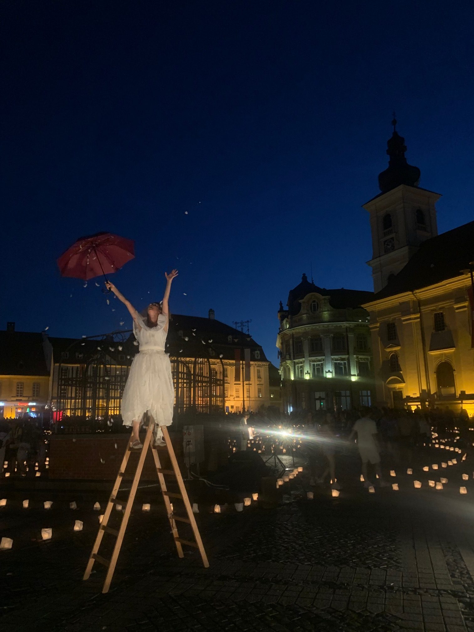 Am asistat apoi reîntorcându-mă în Sibiu, cu uimire și bucurie la creșterea an de an festivalului de teatru. Un oraș transformat pentru câteva zile într-o scenă. Pe lângă piesele indoor, a adus în stradă, pentru orice suflet, miracolul spectacolului. Știu că un spectator din stradă de azi, poate fi mâine tentat să descopere ce înseamnă și teatrul adevărat, ca artă într-o sală. Pentru că a simțit dintr-o dată prăvălindu-se peste el, într-o piață, magia teatrului. Și emoția asta dă dependentă.