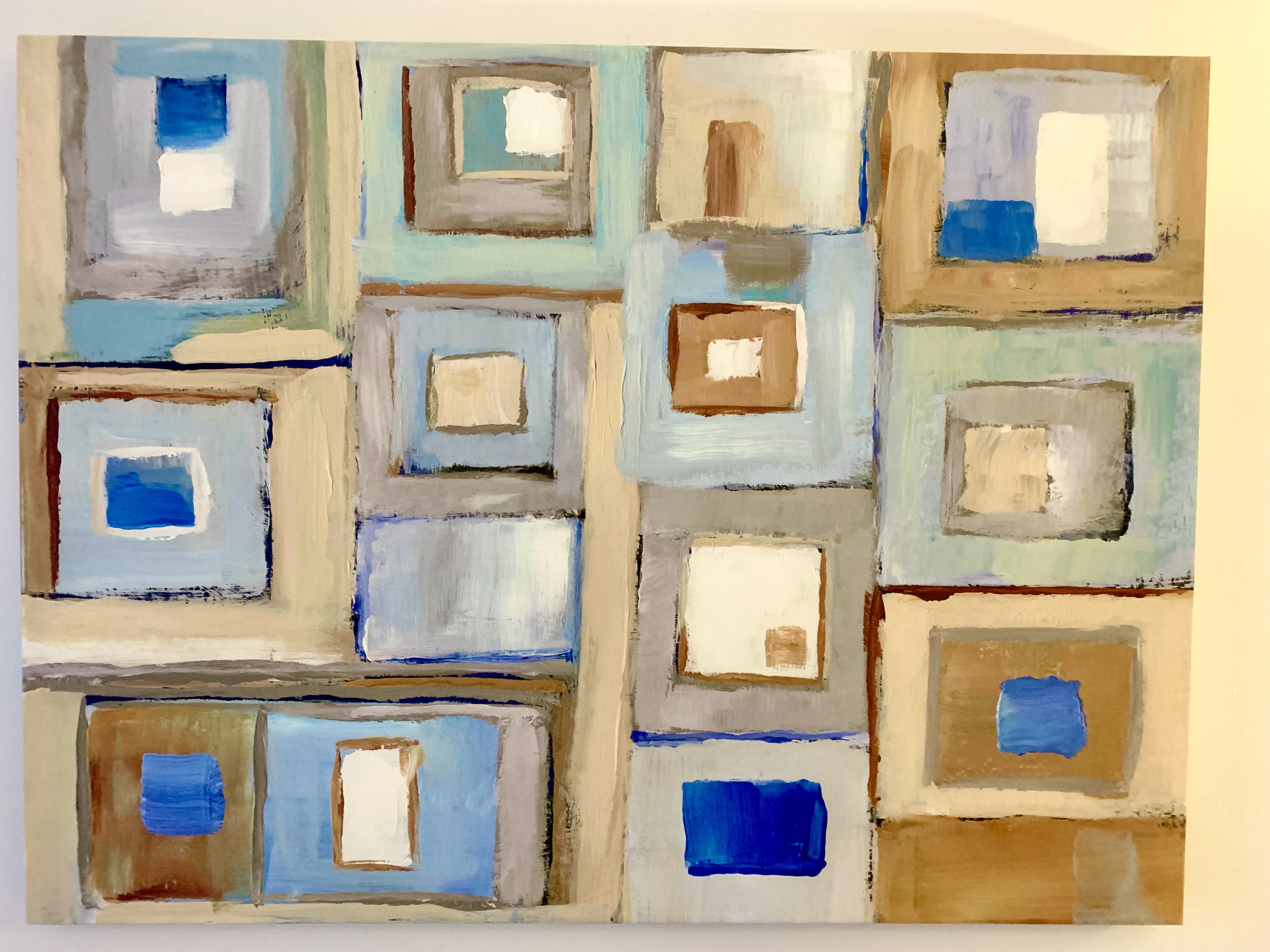 Nuațe de albastru, bleu, bleumamarin, alb, roscat și maro. Culori asortate cu gândurile mele.